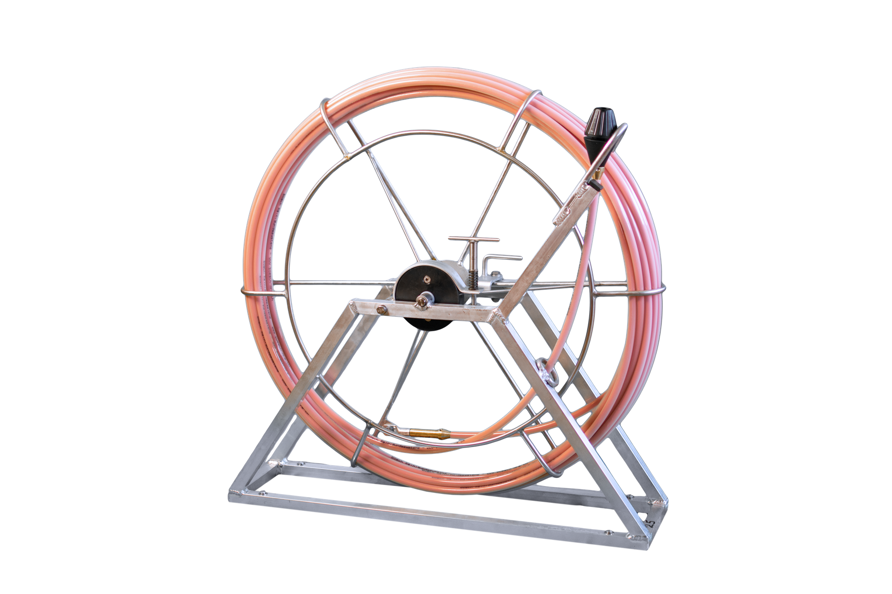 Diverse kompakte und robuste Haspeln in verschiedenen Grössen und mit unterschiedlichen GFK-Stangen werden seit Jahren erfolgreich eingesetzt. Bei den durchdachten Reinigungsgeräten setzen wir auf Robustheit und Qualität, dabei verzichten wir bewusst auf empfindliche und wartungsintensive Teile wie z.B. Kugel- oder Freilauflager. Individuell einstellbare Bremsen verhindern jederzeit ein unbeabsichtigtes und unkontrolliertes Abrollen der Stangen.