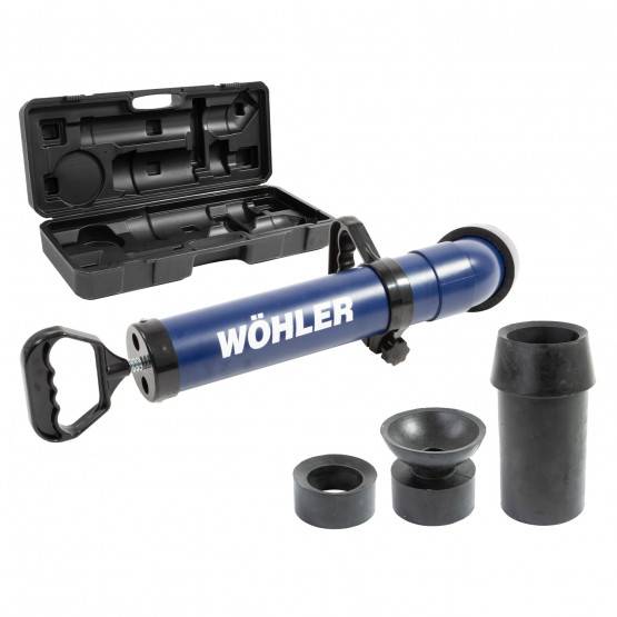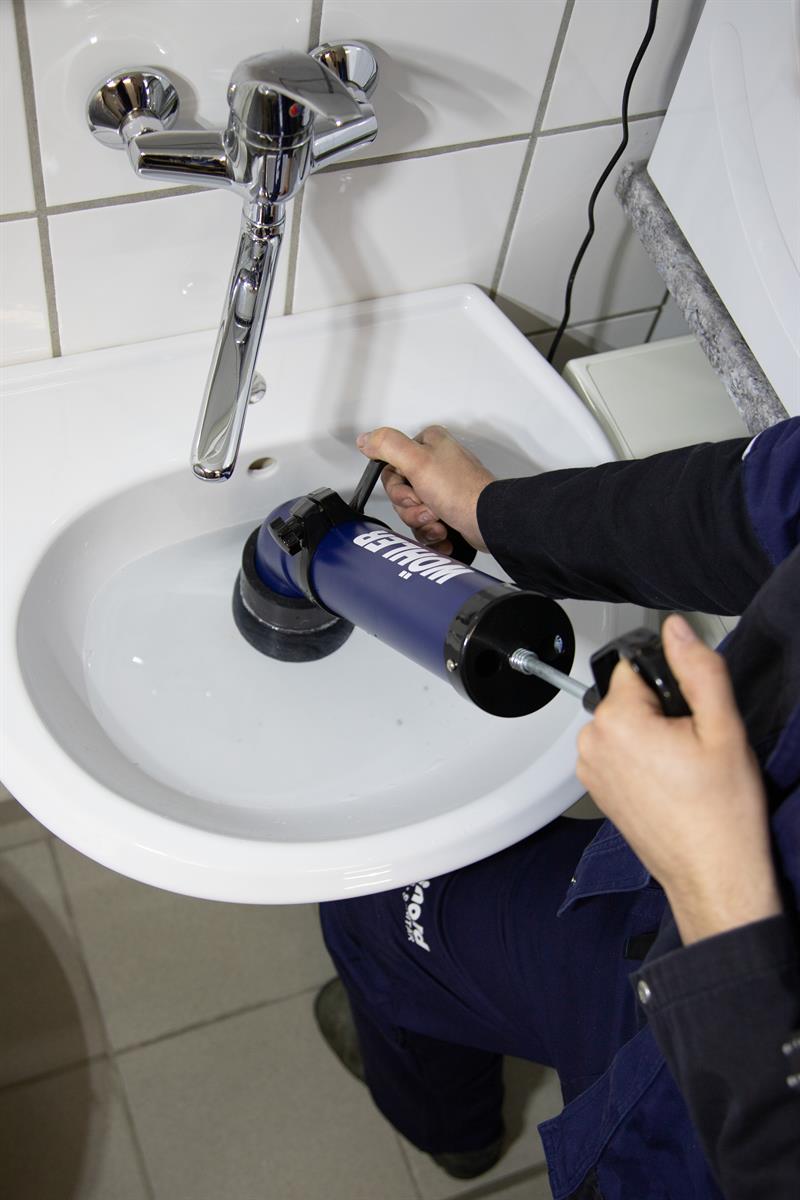 Leichte Verstopfungen in Rohrleitungen lassen sich ohne Aufwand mit der Wöhler PU 100 Rohrreinigungspumpe lösen. Drei einfach zu wechselnde Adapter für verschiedene Abflüsse und ein verstellbarer Handgriff sorgen für flexible Einsatzmöglichkeiten und eine einfache Handhabung.