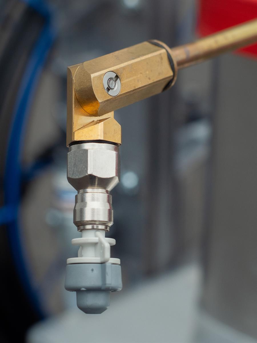 Die optional erhältliche Mini-Desinfektionsdüse ermöglicht auch den Einsatz in Flachkanälen ab 35 mm bei Wohnraum- und Bürolüftungen. Desinfektion und Reinigung von Aggregaten, Maschinen und Geräten