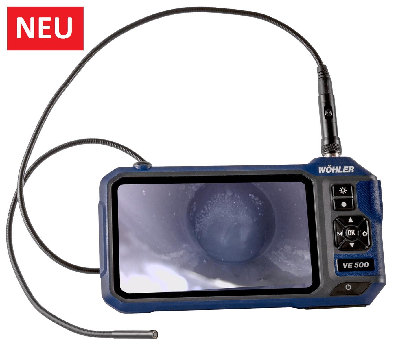 Das VE 500 HD Video-Endoskop ist zur HD-Inspektion von unzugänglichen Hohlräumen durch kleinste Öffnungen ab Ø 6 mm (z. B. Fliesenkreuz) ideal geeignet. Weitere Einsatzgebiete sind z.B. Vorwandinstallationen, Feuerstätten, Brennräume, Verbindungsstücke, Ausgüsse oder Abflussleitungen, da der Kamerakopf wasserdicht (Schutzklasse IP 72) ist. Mit einem großen Angebot an Sonden mit bis zu 10 m Länge ist es für viele Einsatzbereiche geeignet. Der große Bildschirm mit Splitscreenmodus ermöglicht es, auf einen Blick alles zu sehen. Der Standfuß und das Gewinde für die Magnethalterung gewährleisten, dass die Hände in jedem Einsatzbereich frei sind.