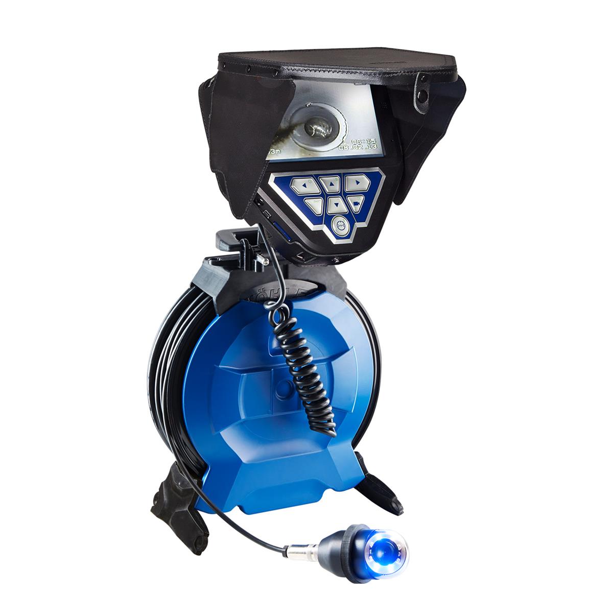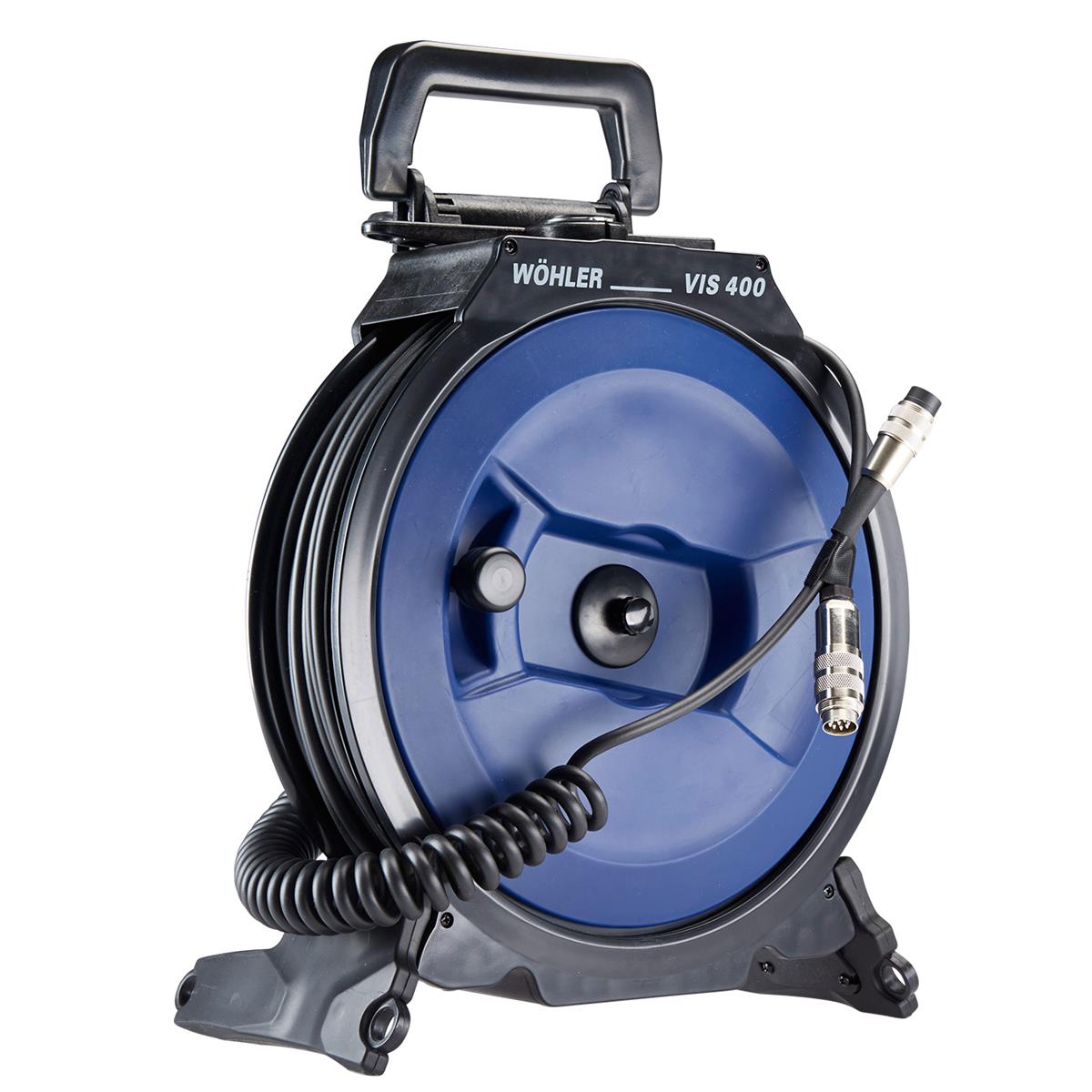 Die Kabelaufwicklung VIS 4XX dient zum Anschluss an den Farbmonitor VIS 400. Der Monitor kann dabei auf die Kabelaufwicklung montiert werden und bequem vor dem Körper getragen werden. Ein ideales Hilfsmittel bei Inspektionen von oben (z.B. Kamine vom Hausdach aus). Die Kabellänge beträgt 20 m.