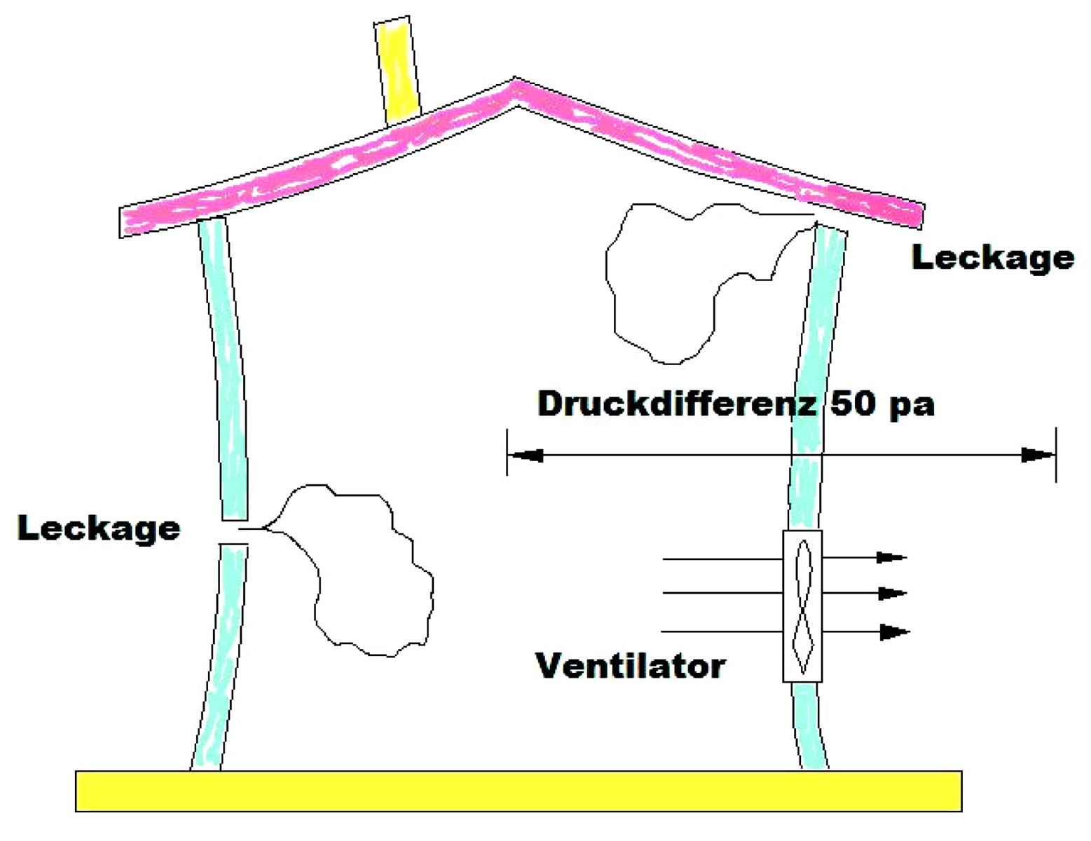 zur Messung der Luftdichtheit der Gebäudehülle nach DIN EN 13829.